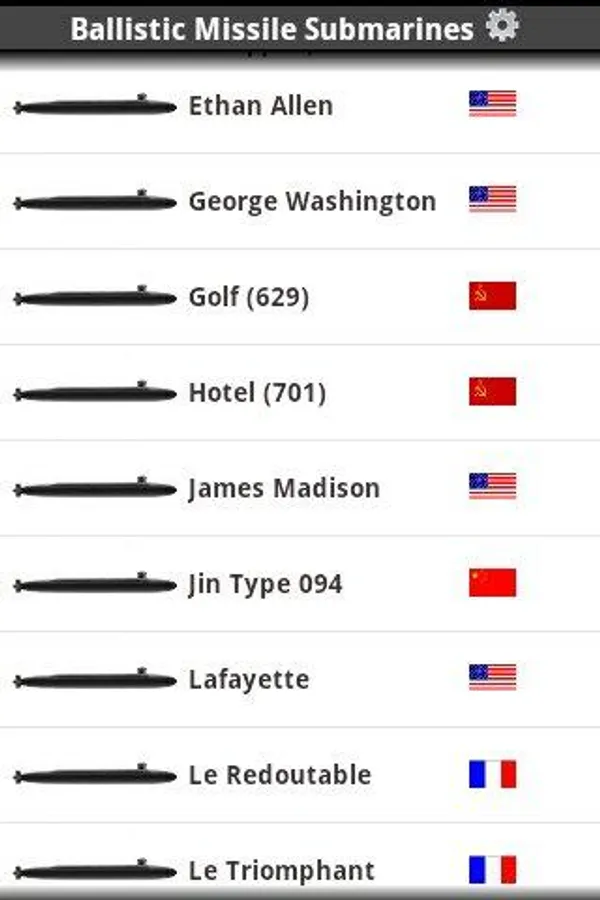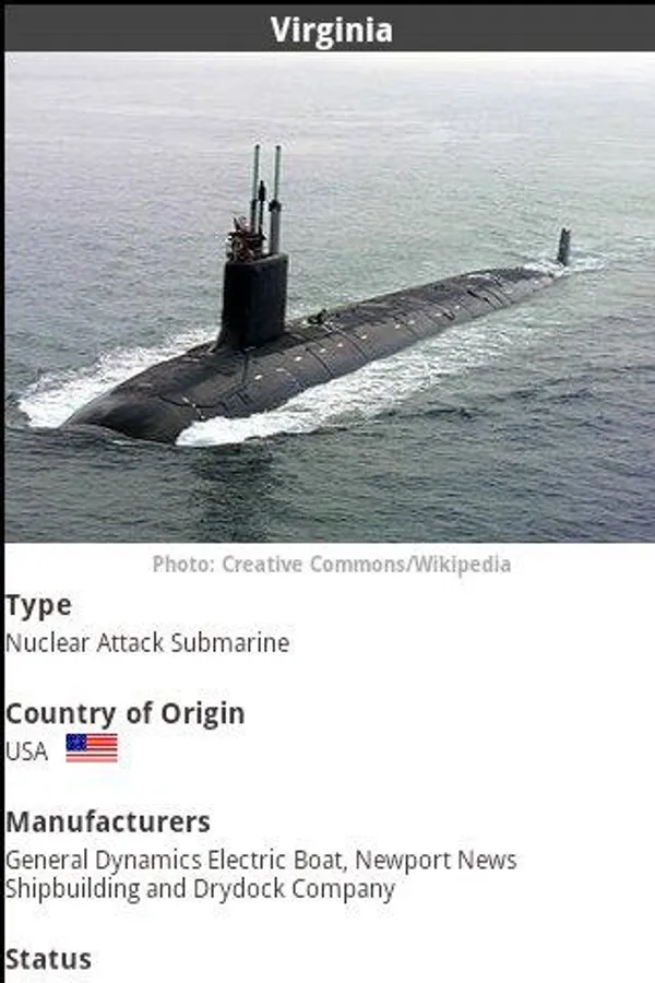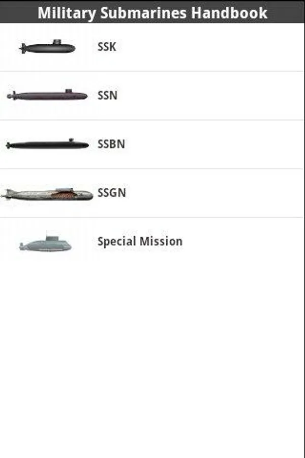 * Extensive Vessel information such as Commission dates, National Origin, Manufacturer, Dimensions, Speed, Endurance, Weapons, Sensor suite, Military/Historical notes and more! Each Submarine entry comes with an image of the vessel.