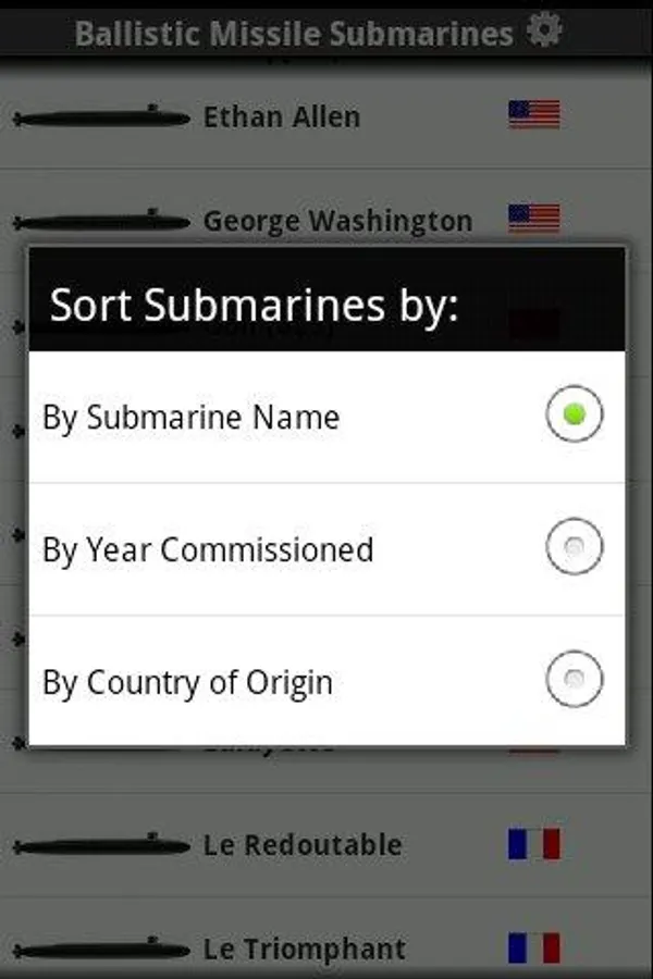 * Sort the Submarines by name, introduction date, and national origin!