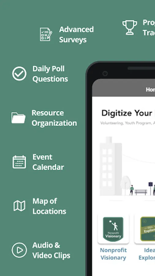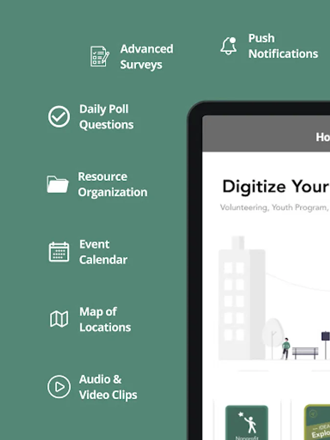 Our platform helps nonprofits launch their own mobile apps. Our Admin Portal gives our customers the ability to update content, track user participation, and retreive outcome data for funders.