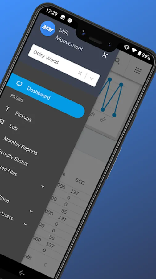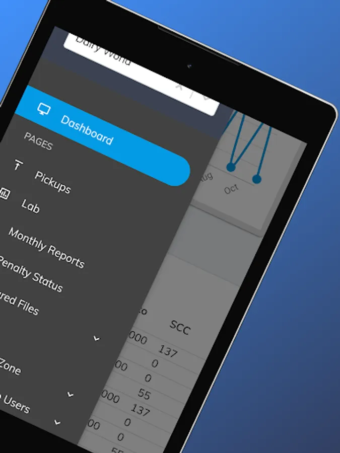 Tool for dairy producers to monitor their milk pickups, lab samples and monthly reports.