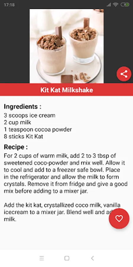 This Easy Milkshake Recipes app is very user-friendly. All you have to do is to download the app and install on your Android device. To select, simply tap on the photo of your desired smoothie recipe and it will show all the details.