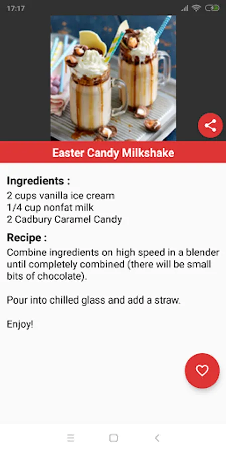 The recipes in this app are very easy to follow and would often require just a few basic ingredients. Milkshakes are nice to have for snack, as a refreshment or even as a dessert. They are easy and fast to make, all you need is a blender to combine all the ingredients together.