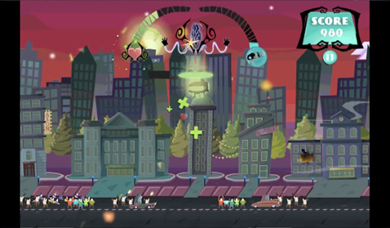 Horrify humanity! Abduct cars! Laugh maniacally! Attack of the Ghastly Grey Matter is a fast-paced, side-scrolling endless runner game for Android devices. Play as the Ghastly Grey Matter, a melodramatic B-Movie villain intent on invading Earth. Take control of Ghastly’s powerful alien hand to abduct crowds of puny humans, and smash your way through several visually stunning environments!