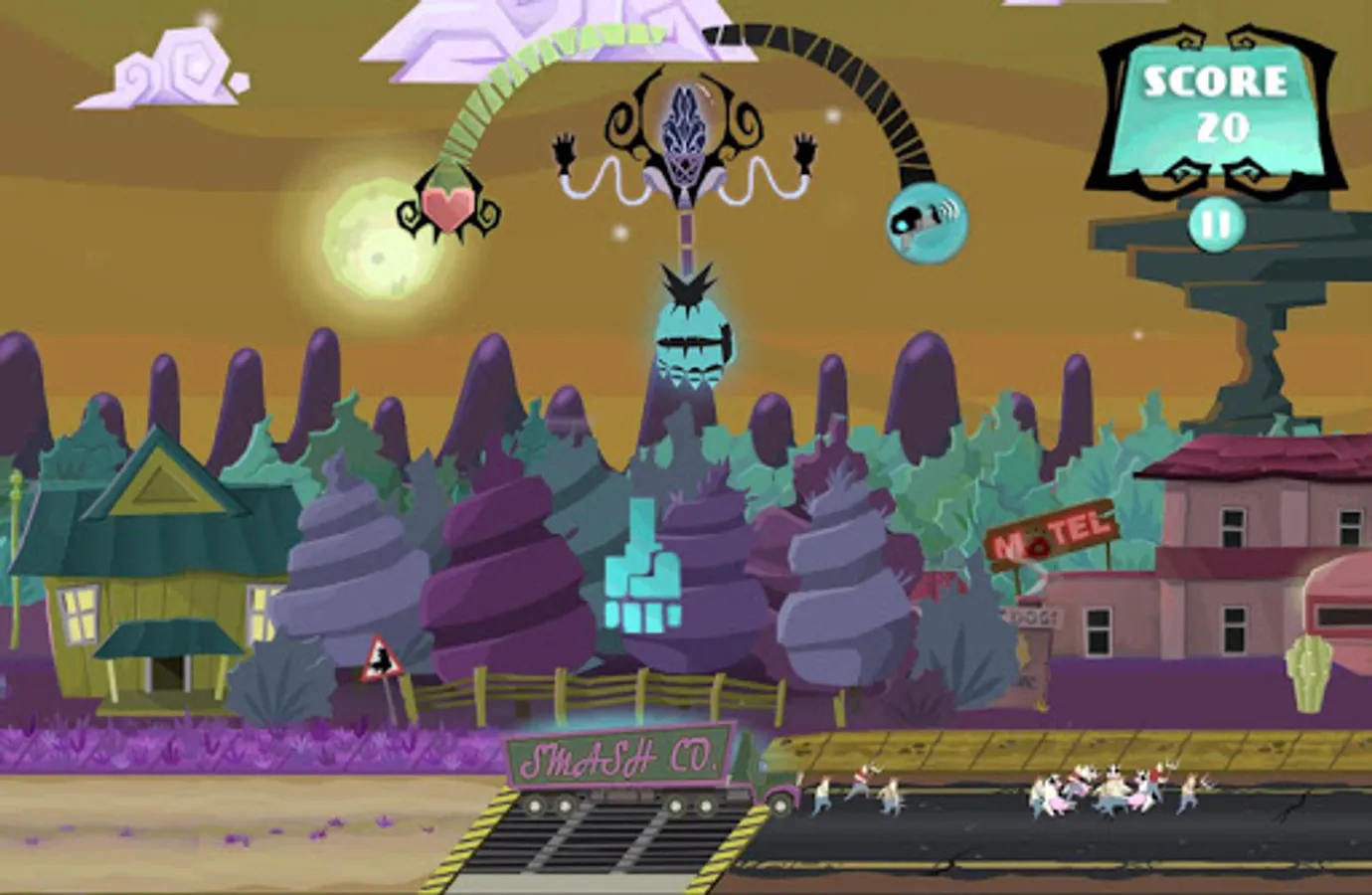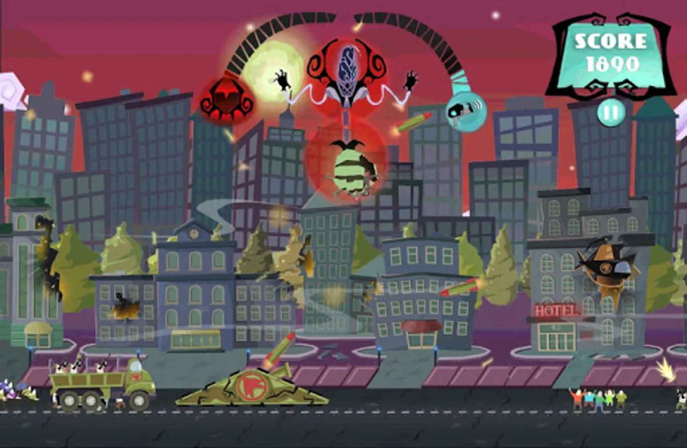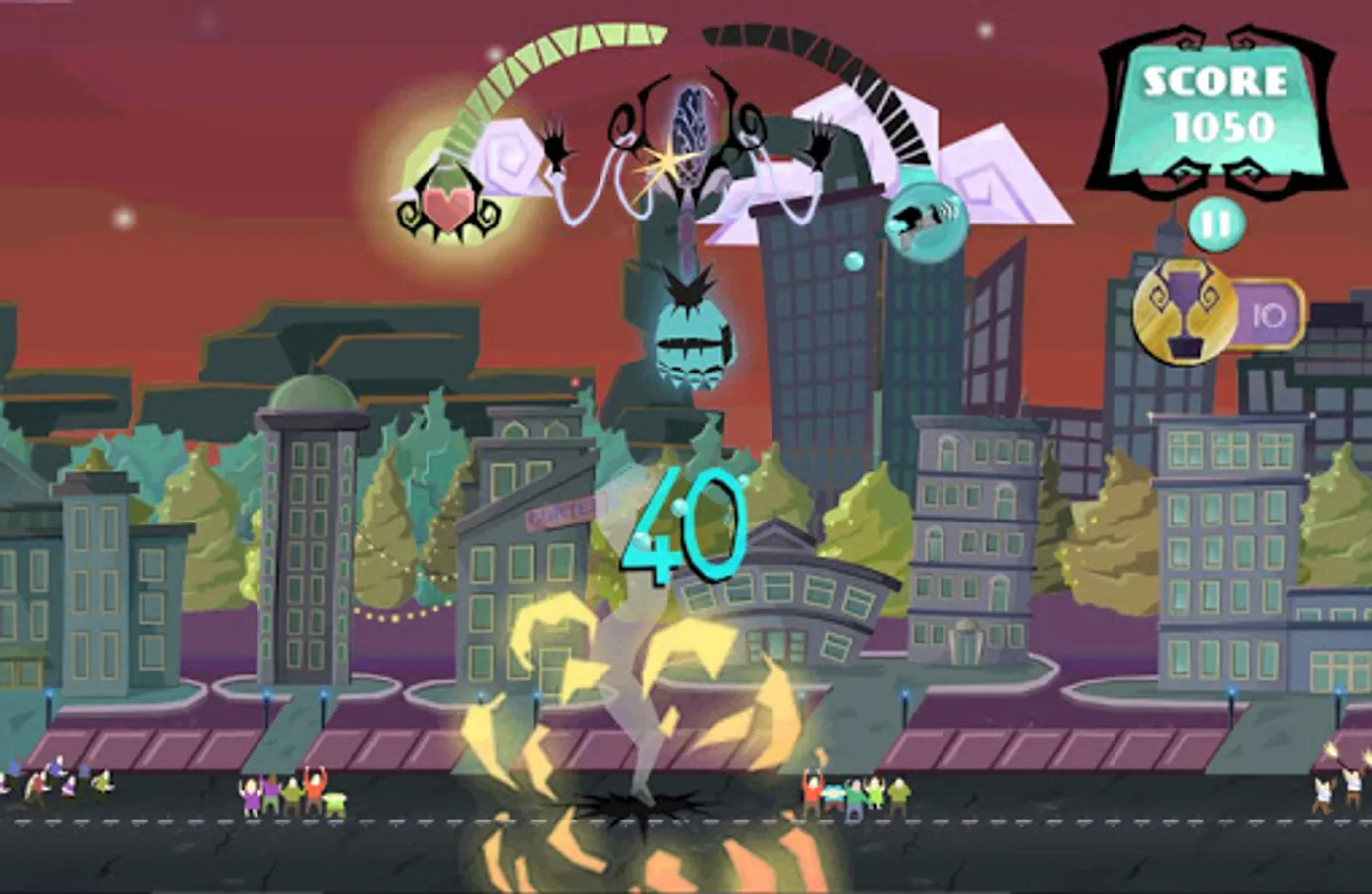 • Drag the fist down upon puny humans to squish them or make vehicles explode. All carnage gains points!