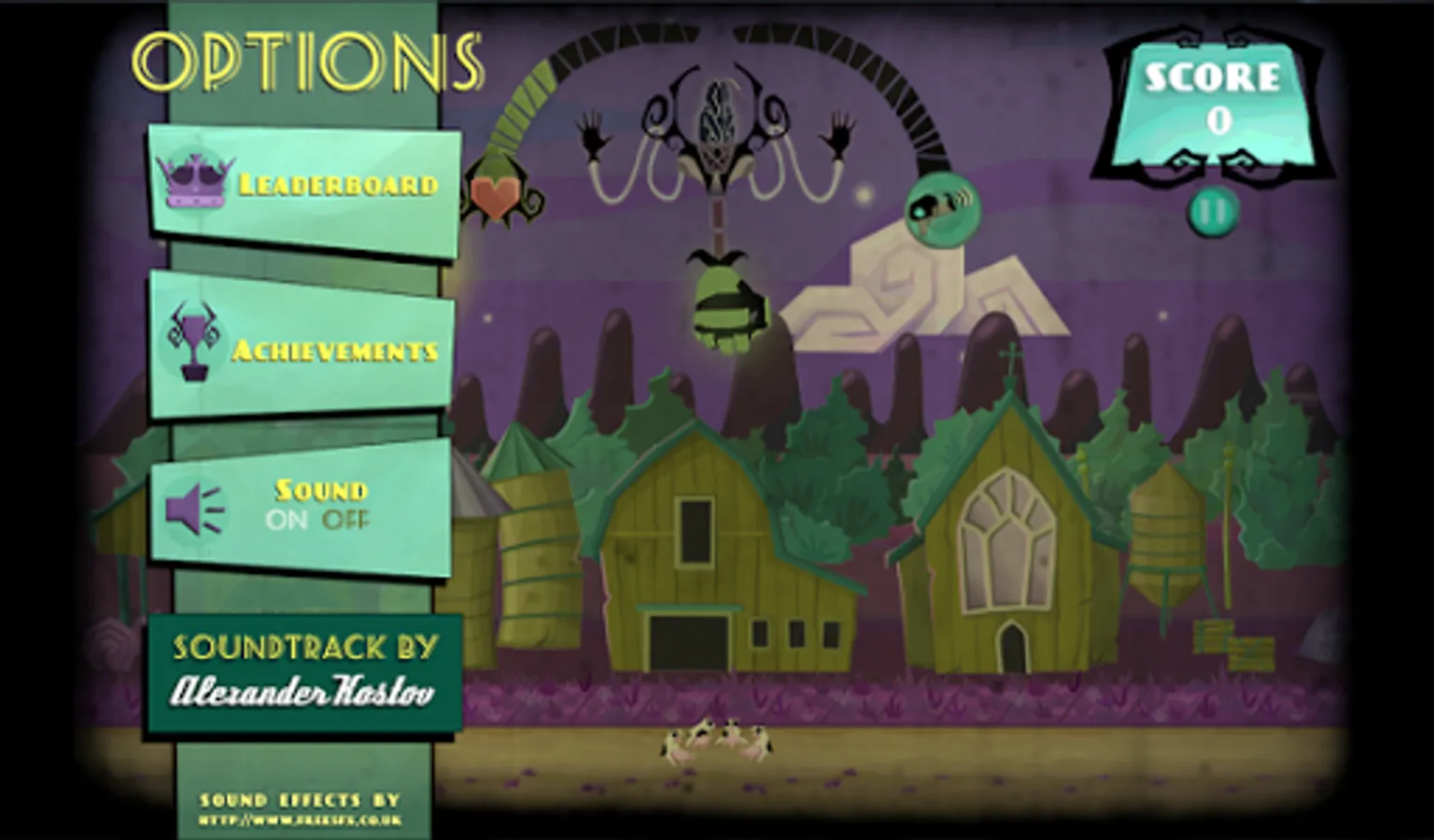 • Tap the screen on the options dialog to go to the achievements or leader board screens, and to turn the audio on/off.