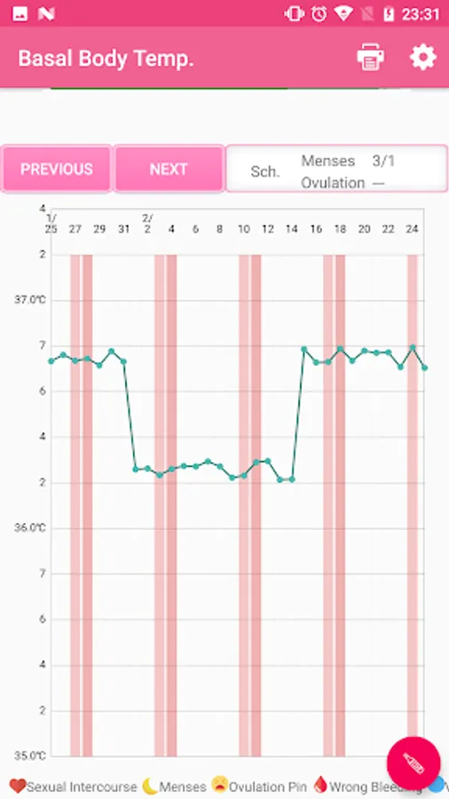 · You can estimate the high / low temperature period, and display the scheduled date for the physiological / ovulation day.