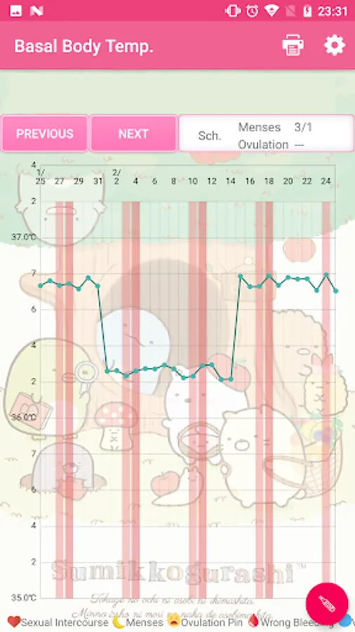 You can check the transition of basal body temperature for 3 months, and you can predict the period, such as menstruation / ovulation, and the physical condition change.