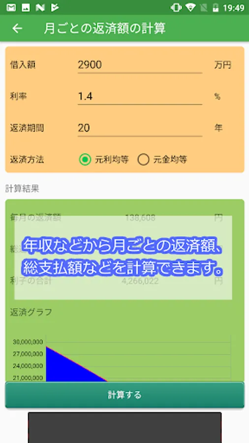 住宅ローンの計算(シミュレーション)をするアプリです。