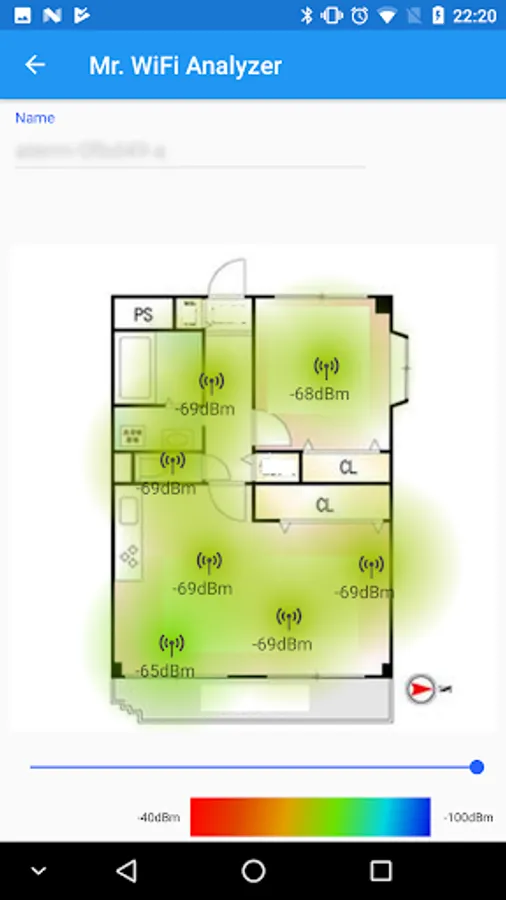 Wi-Fi signal strength can be displayed on a map by measuring the signal strength for each location. You can use this to find out where your Wi-Fi is strongest.