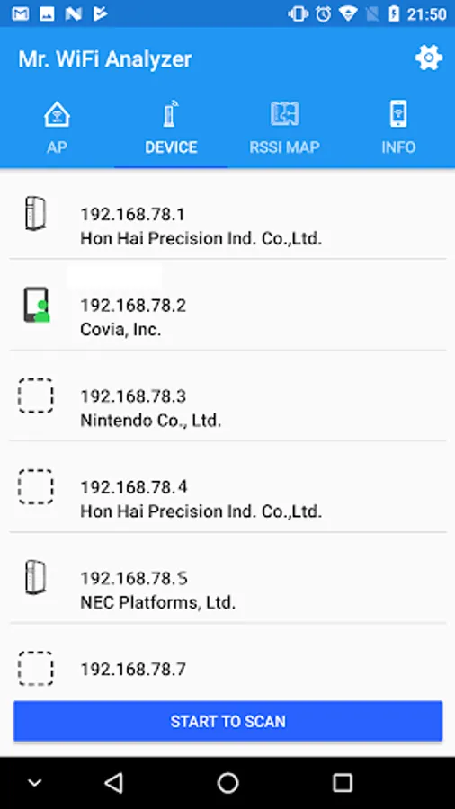 This app measures the radio wave status of Wi-Fi, graphs it, and displays it as a signal strength map. You can search for devices on the Wi-Fi network you are currently connected to and visualize your Wi-Fi network.