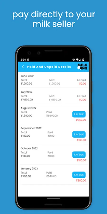 This customer application allows users to easily order milk, view their current bills, and pay those bills all in one convenient location. With this app, users can quickly and easily place an order for milk delivery, view their current bills and previous transactions, and pay those bills using a secure and reliable payment system. Whether you're a busy parent trying to keep your fridge stocked with milk for your kids, or a business owner looking for an easy way to manage your milk deliveries, this app is the perfect solution. With its user-friendly interface and powerful features, it's never been easier to stay on top of your milk orders and payments.