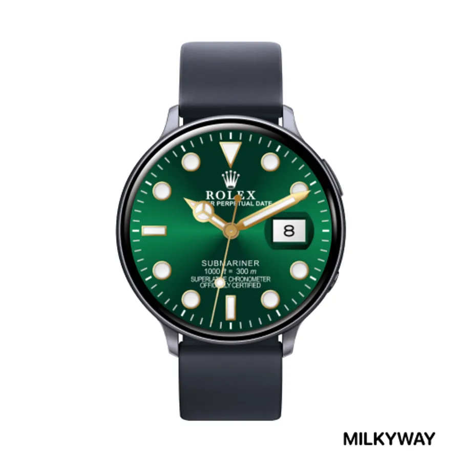 The MilkyWay ROLEX Submariner DATE display date and time on your wearable Wear OS Smartwatch device with aesthetic Swiss made design analog watchface configuration for you to choose. Put on a watch face that looks class and luxury with the royal themes for your smart watch.