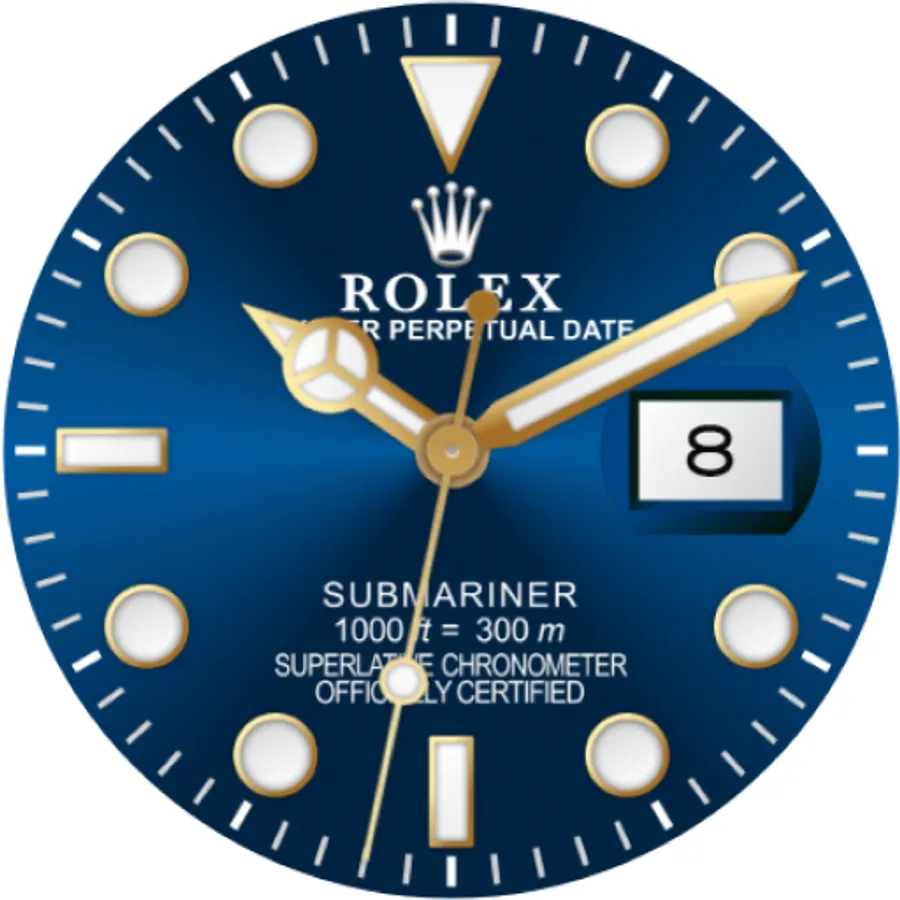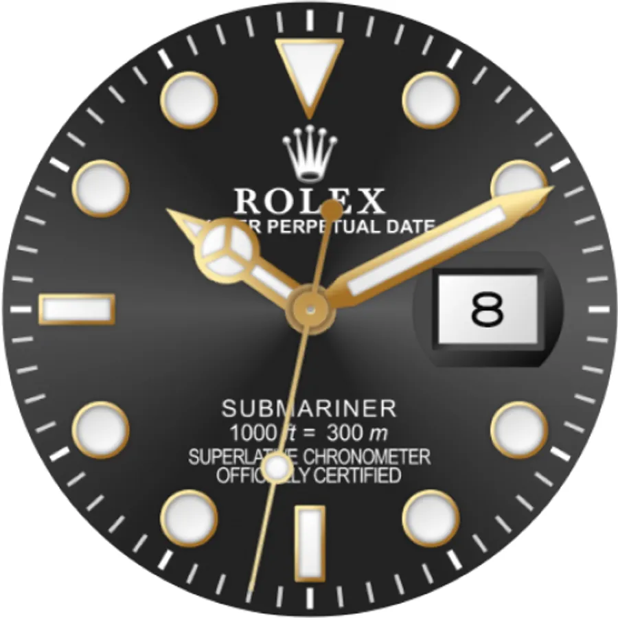 Showing you the exact time with a traditional and retro analog clock based on the design from the Swiss made Rolex Oyster Perpetual Submariner. This MilkyWay ROLEX Submariner DATE watch face will help you put a piece of luxury and class to your wrist with different version of the ROLEX Submariner Oyster Perpetual as you want.