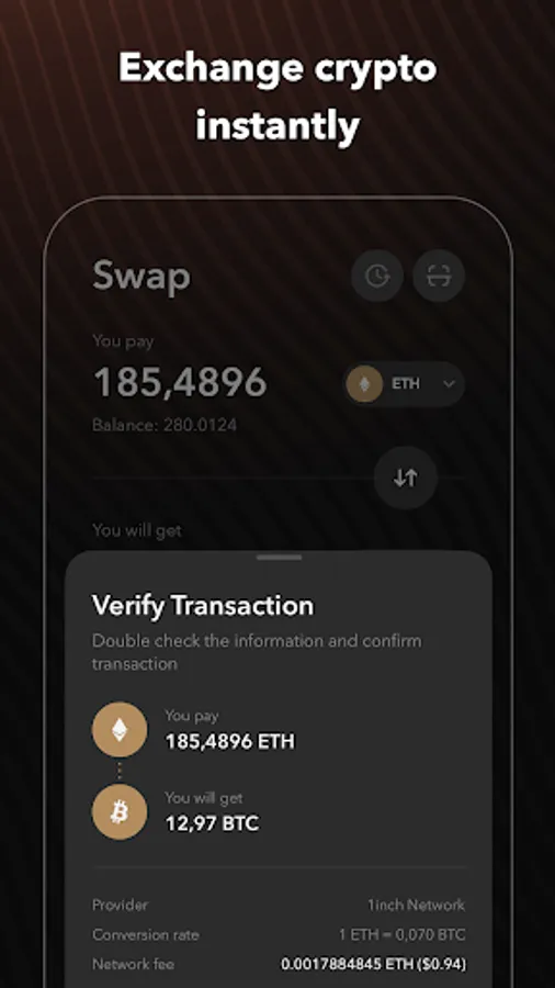 Swap in a few taps: optimize, update and grow your crypto portfolio.