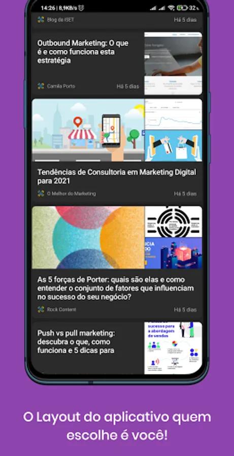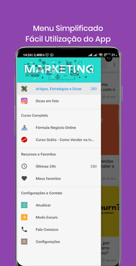 Our app also works offline, so you can learn about business planning, management, sales, digital advertising, Hotmart, Monetizze, Eduzz, social media, content marketing, SEO, analytics, branding and more, whenever you have it. 5 minutes free - anytime, anywhere.