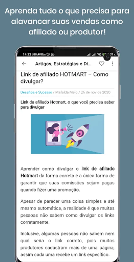 This app is the fastest, easiest and free way to learn new digital marketing skills and strategies for Hotmart affiliates.