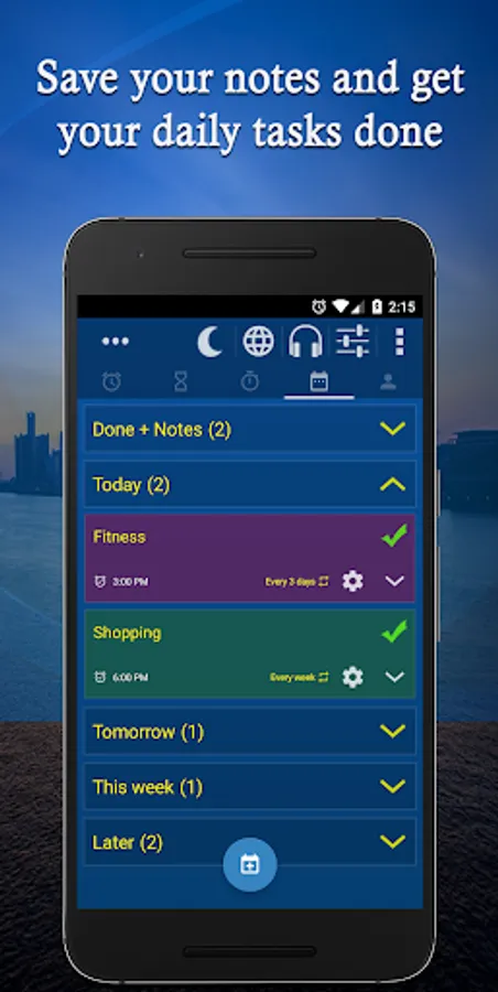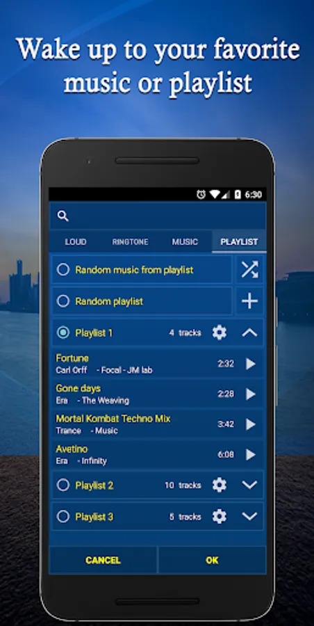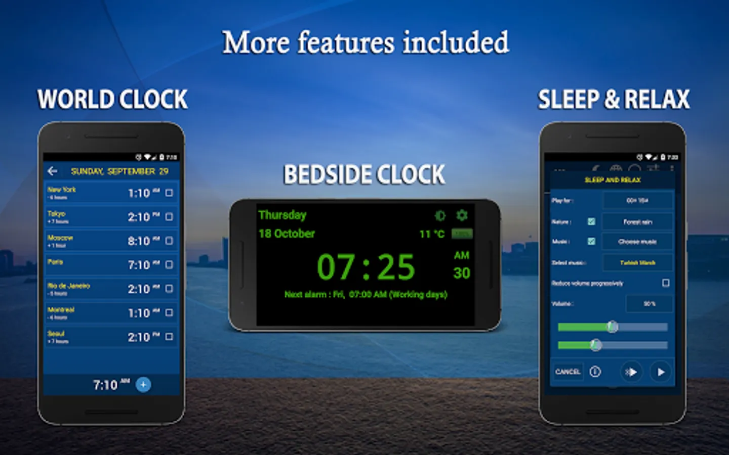 Alarm Plus Millenium offers a valuable Android tool to relax during a nap or to help you fall asleep with a very relaxing music, you can:
