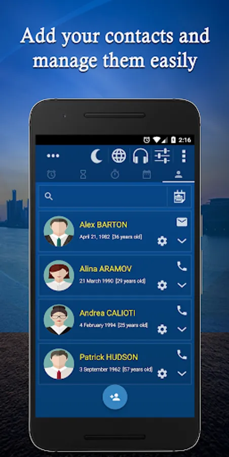 Alarm Plus Millenium offers you a personalized management of your contacts with their birthdays, you can: