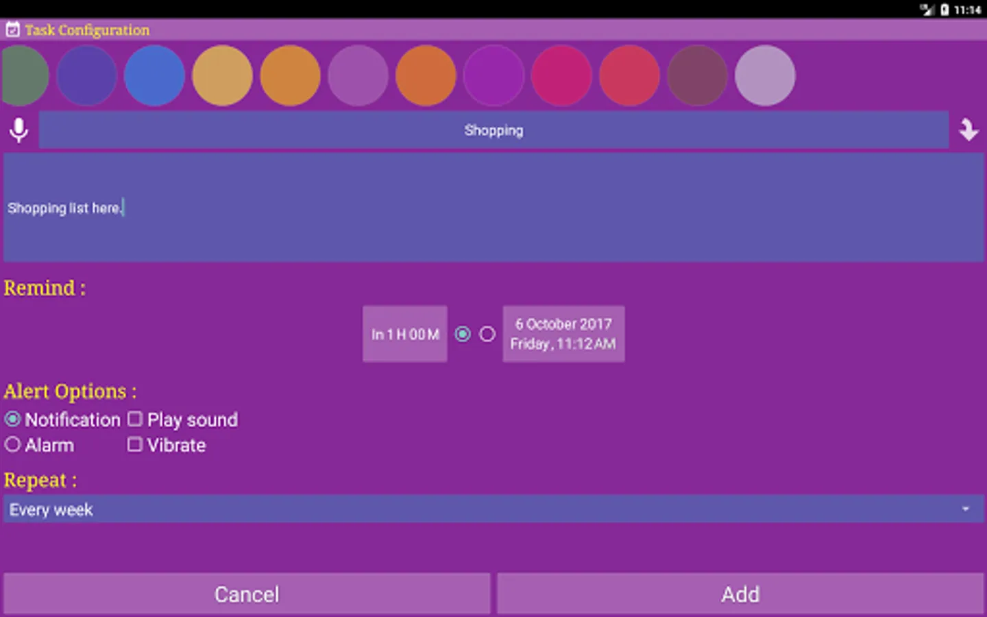 ✔ Wide choice for repeating tasks (every x hours, x days, weekends,...).