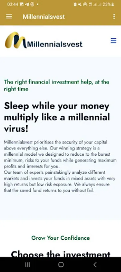 Millennialsvest assists millions of customers, users, members and co-operators globally to reach their fiscal goals by helping them to save and invest safely and smartly.