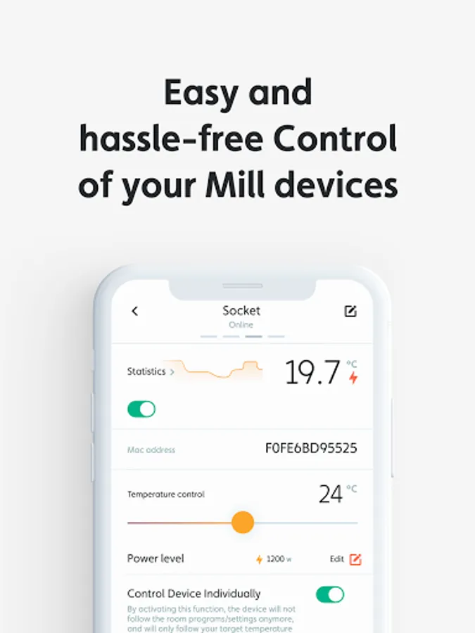 The Mill Norway app lets you add, configure, monitor and control your connected Mill devices from anywhere. You can schedule your Mill devices to turn on or off according to your schedule and effectively reduce your electric heating bill. Stay in full control of your power consumption with our new statistics function and do changes to your schedule and temperatures to optimize according to cost and/or comfort