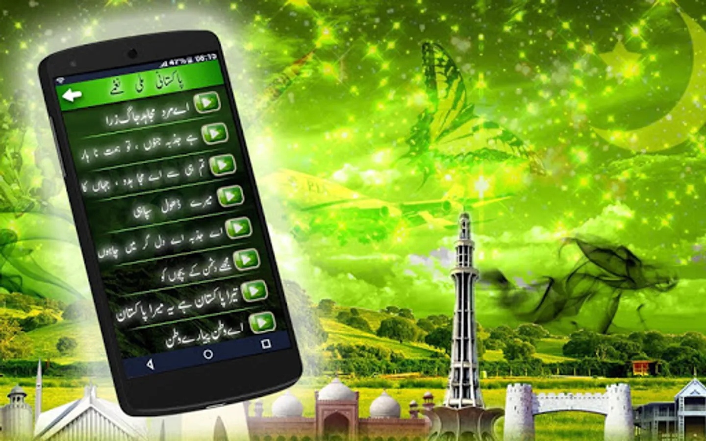 Milli Nagmay-Pakistan national song Pak Azadi Song is a spectacular pak apps for all those who loves their country. Pakistani milli naghmay app is designed to express love for the country. Mainly 14 august pakistan app composed to celebrate independence day on the great event of 14 august 1947. This app provides best patriotic azadi songs in mp3/audio version.