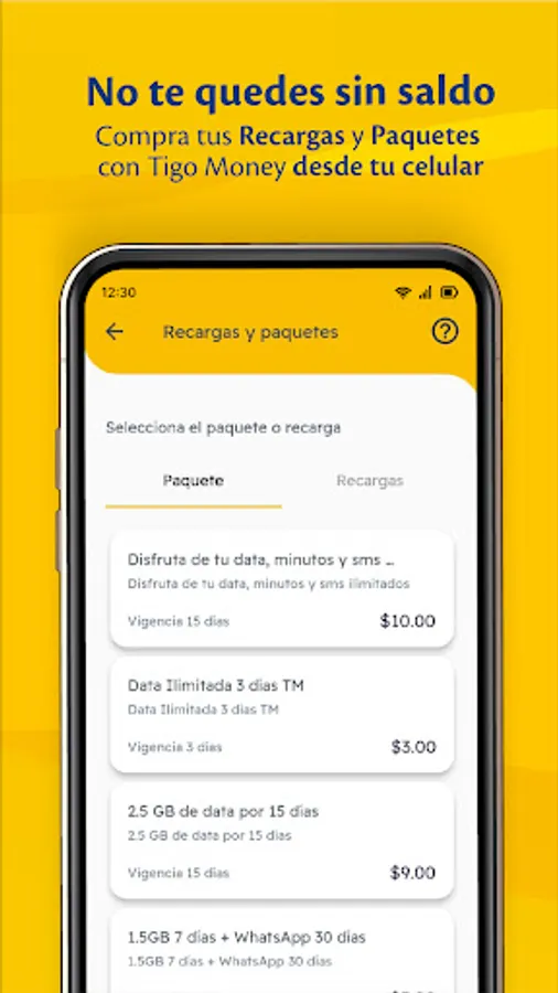 • Buy Tigo packages and credit recharges