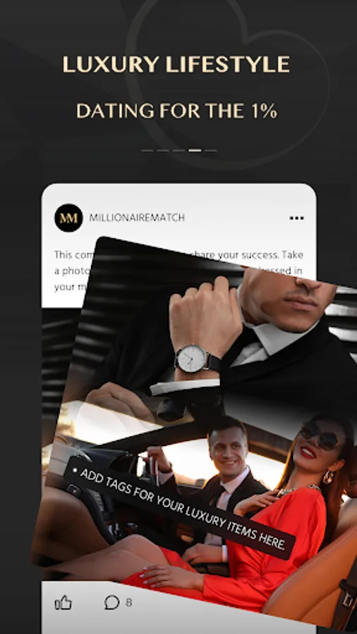 The MillionaireMatch app is a true Millionaires Club where elites can meet. We have been the industry leader in wealthy dating since 2001. We know our members have high standards and want to be discreet. We strongly believe in protecting members' privacy. We never share personal information with databases, other apps or other companies.
