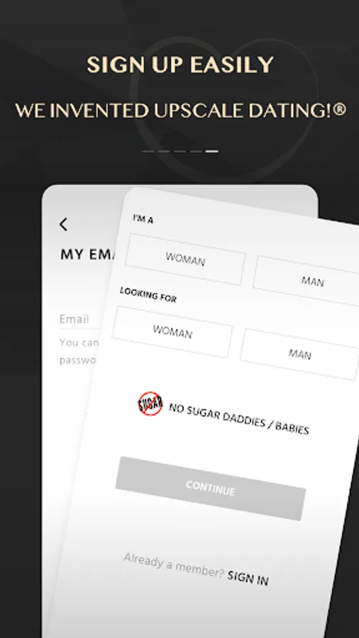 MillionaireMatch is not a sugar daddy dating app. Those looking for a sugar daddy or sugar baby relationship will result in being banned on our platform.
