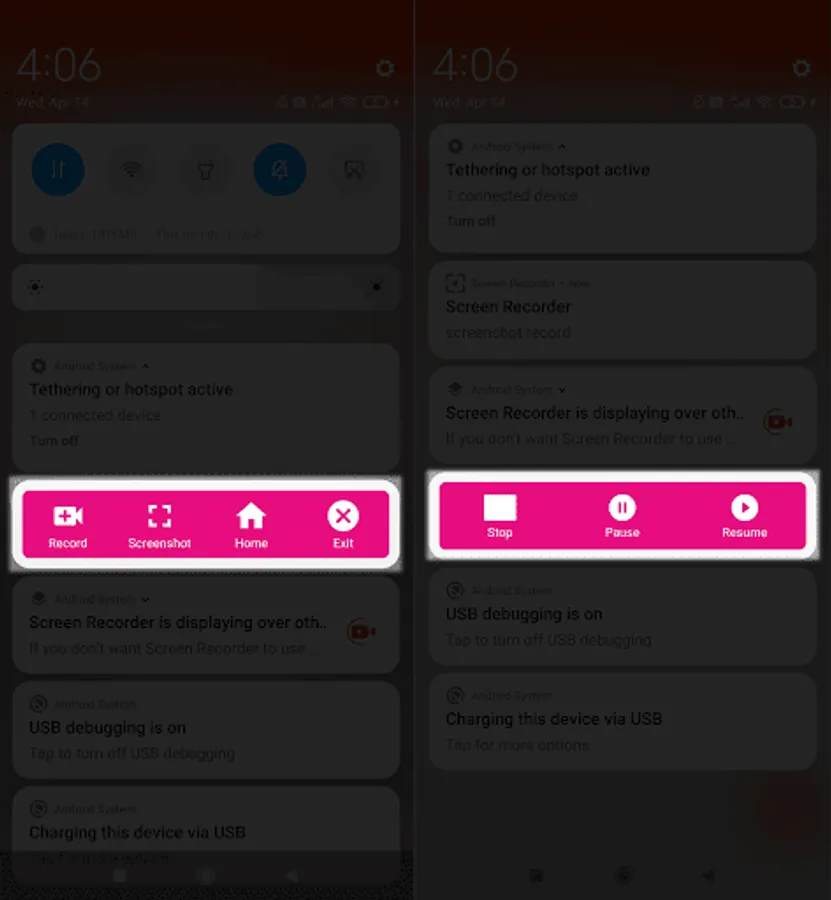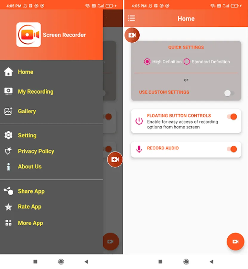 - Record screen with Audio or No Audio