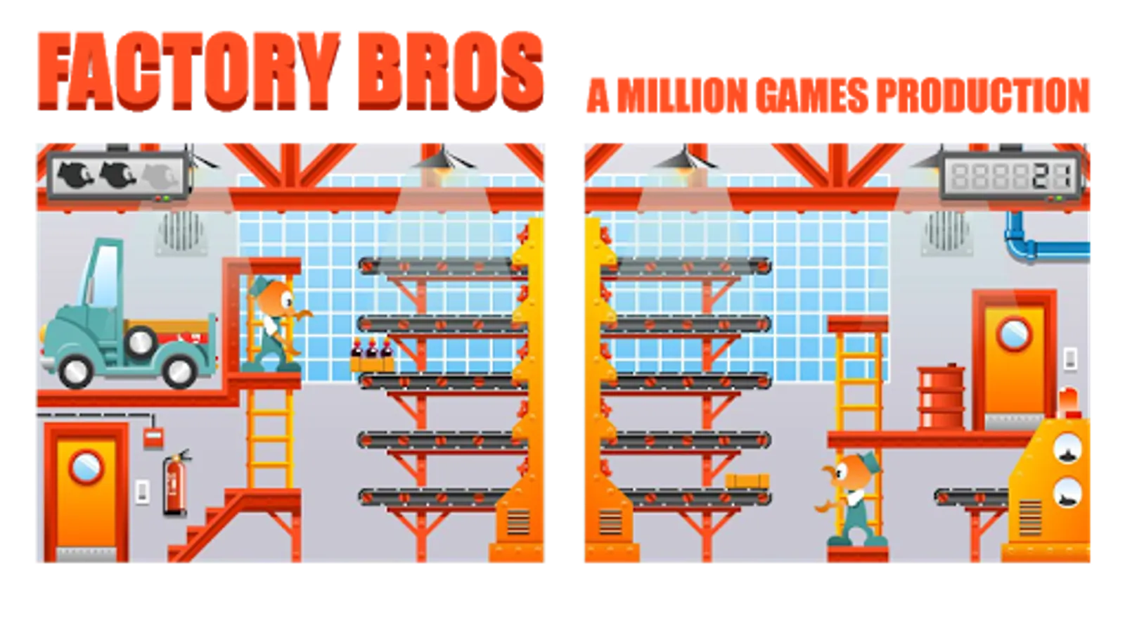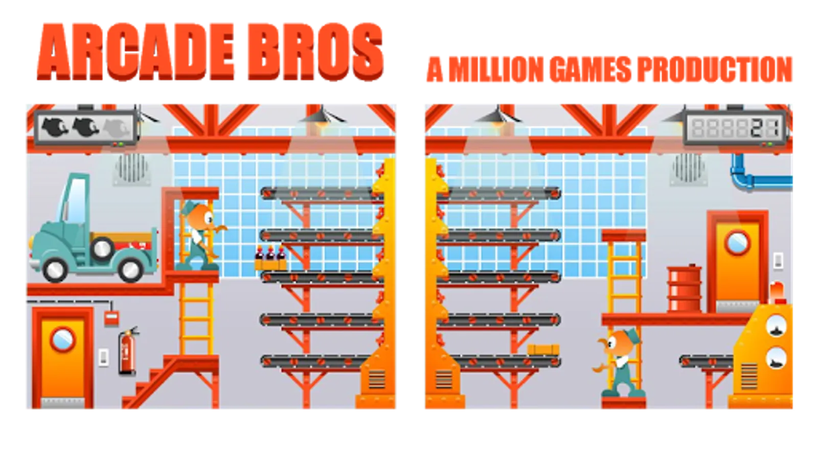 Help ARCADE BROS, with their work in the bottler. Load boxes on the conveyor belt and fill the truck!