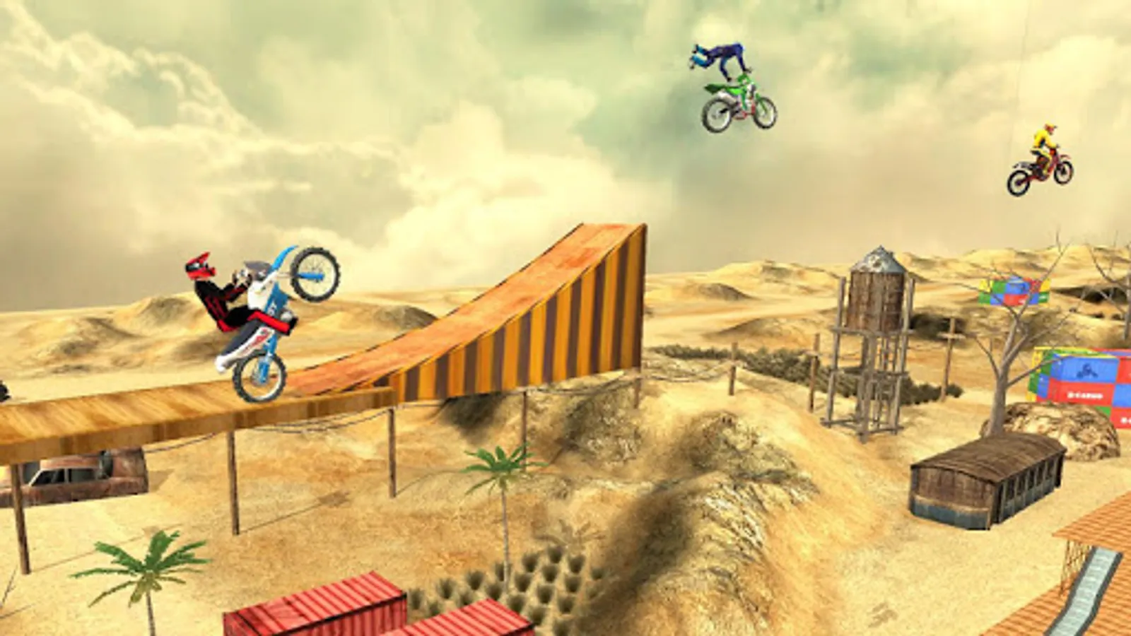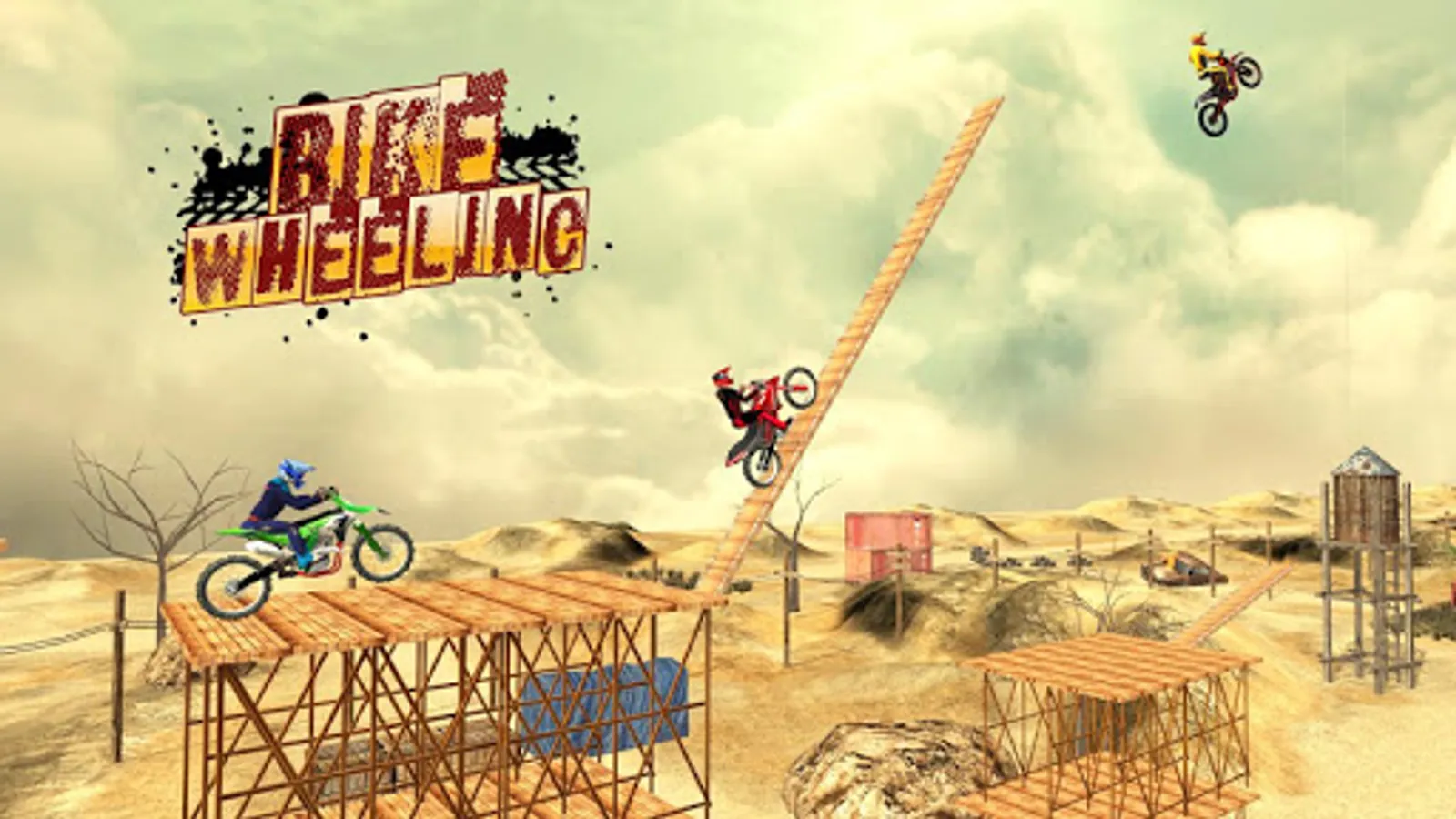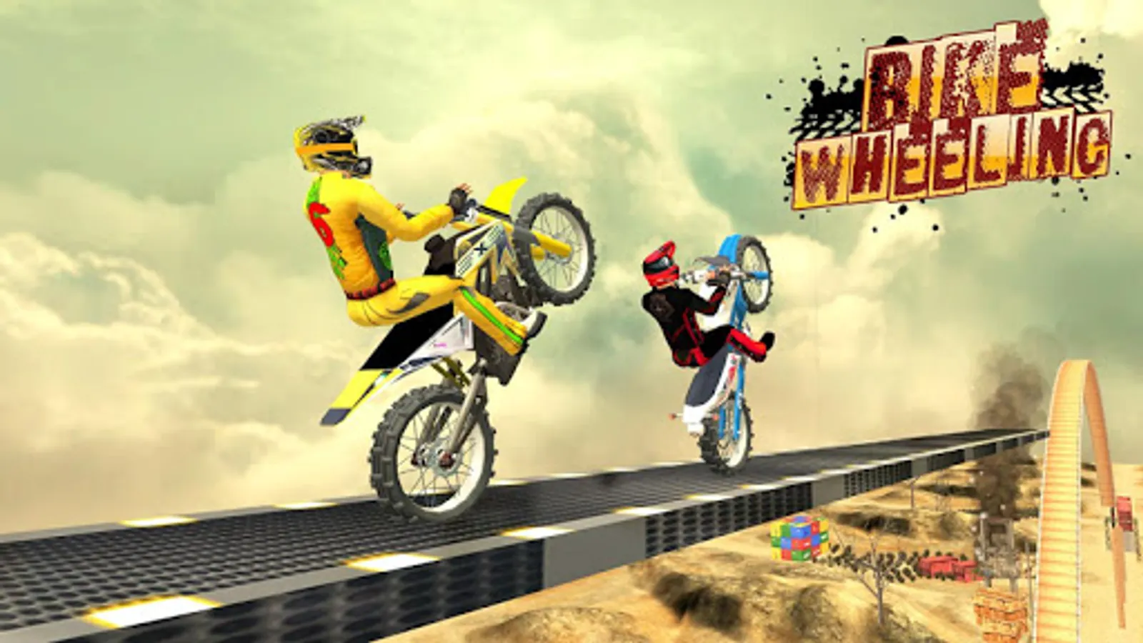 Do daring wheelies on few points assigned for you, otherwise you fail! Turn your wheel, burn your tires now. Explore the Desert Theme and Mud theme as a realistic 3D environments! Cross the challenging obstacles & wild slopes in mid air. Try to find the right balance between power and grip while staying in Happy Bike Wheels. Use your motorcycle driving tricks and complete dangerous challenges and make all achievements of this stunt game.