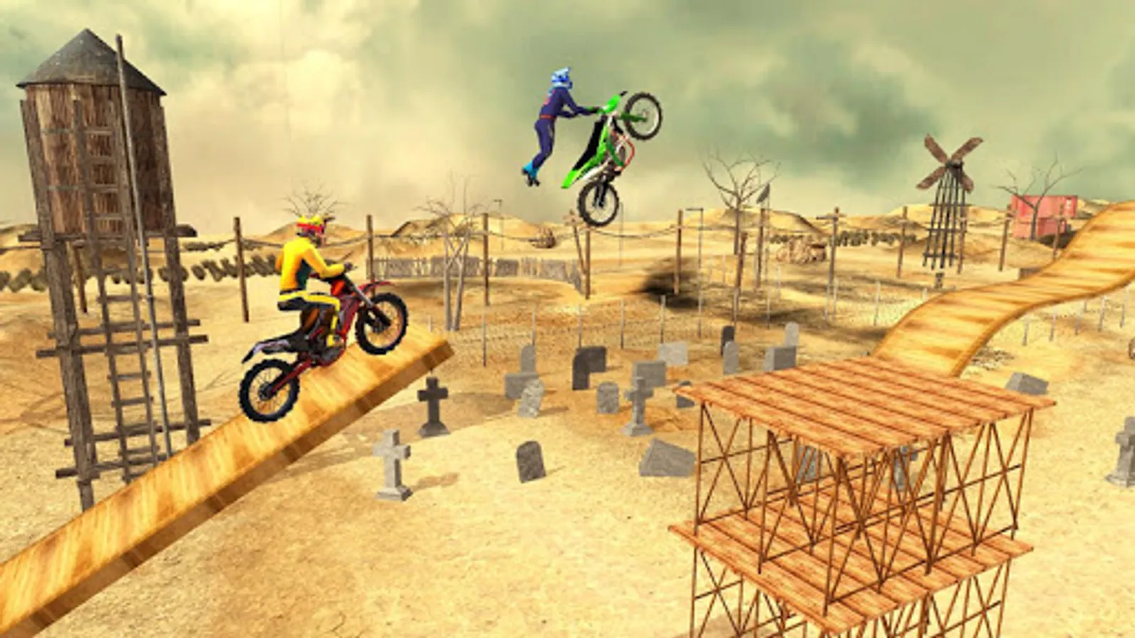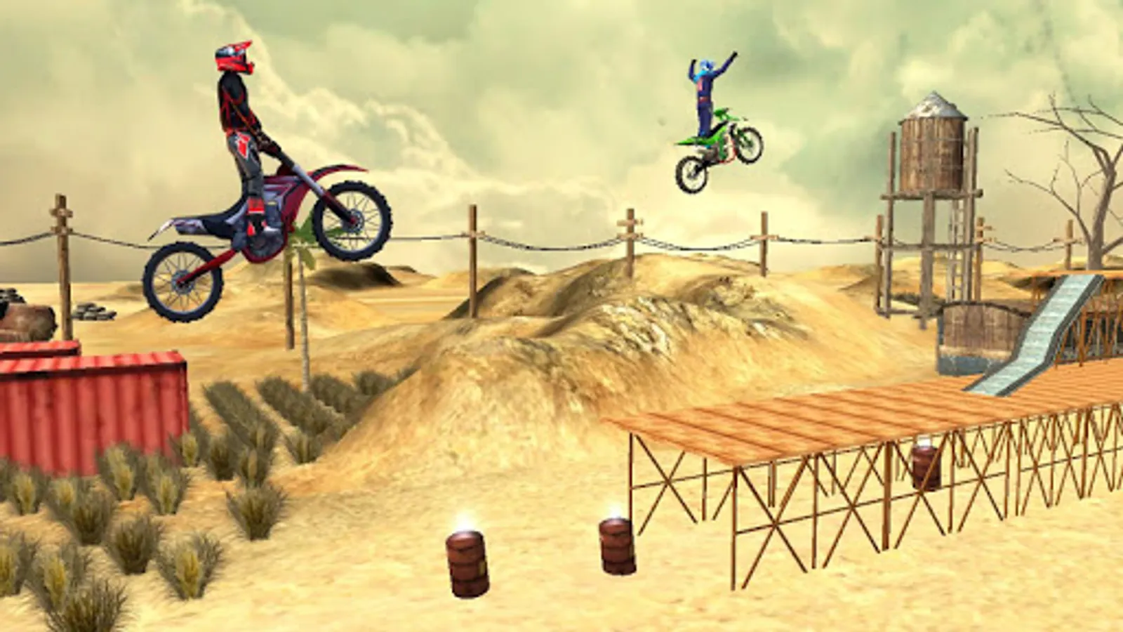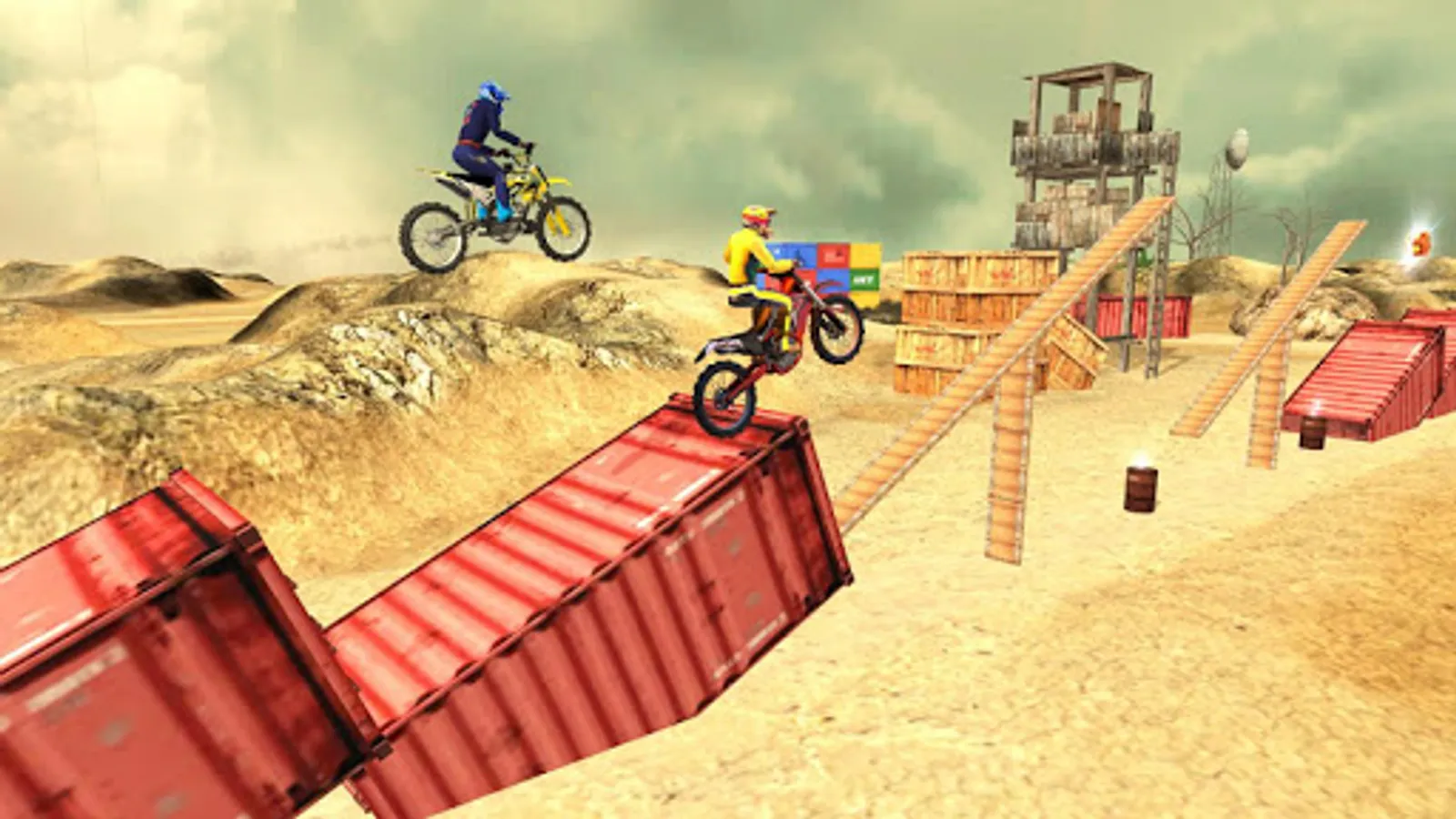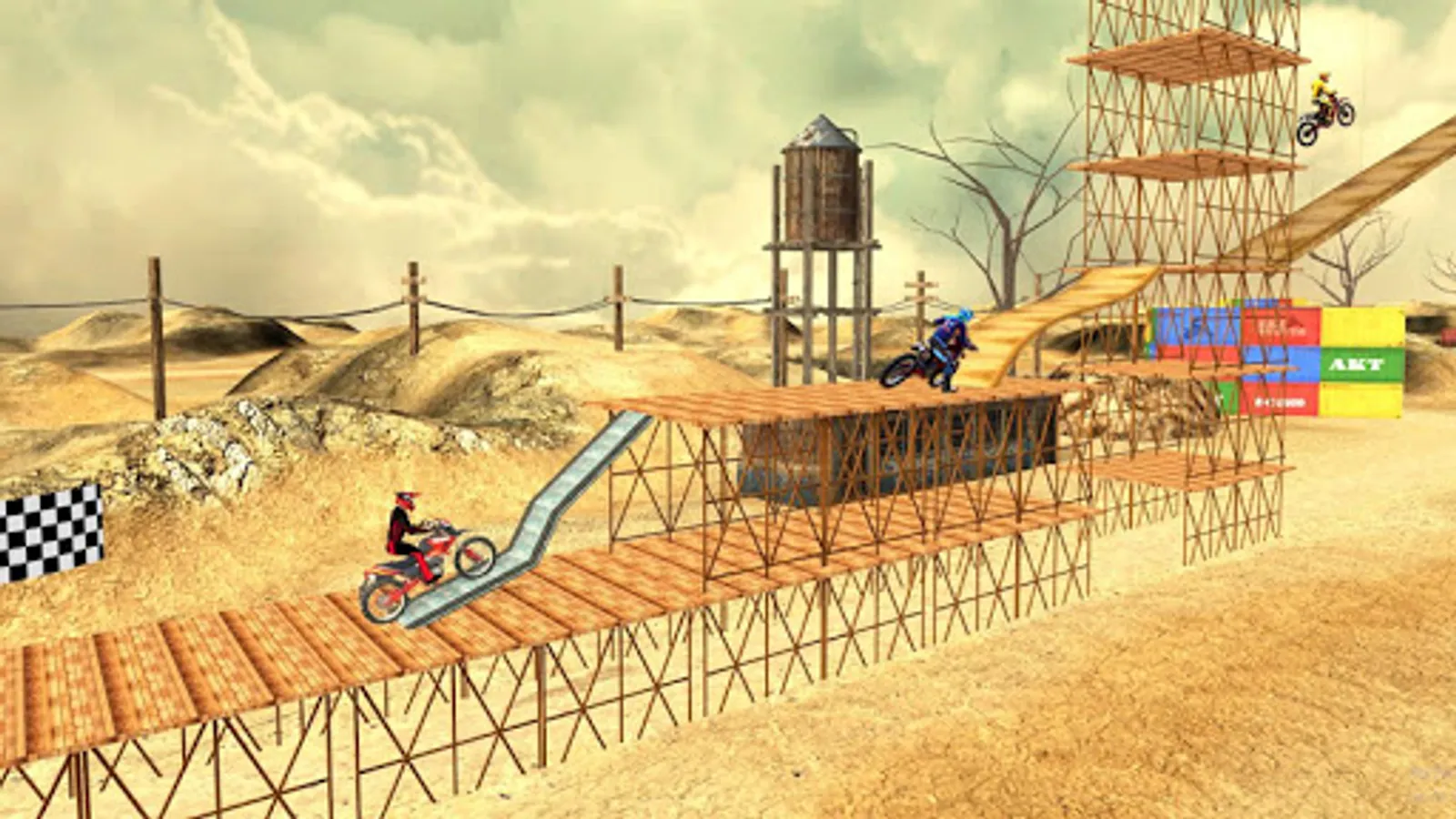 Do daring wheelies on few points assigned for you, otherwise you fail! Turn your wheel, burn your tires now. Explore the Desert Theme and Mud theme as a realistic 3D environments! Cross the challenging obstacles & wild slopes in mid air. Try to find the right balance between power and grip while staying in Happy Bike Wheels. Use your motorcycle driving tricks and complete dangerous challenges and make all achievements of this stunt game.