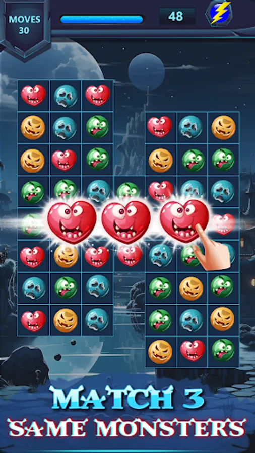 - Swap and match colorful monsters to solve puzzles.