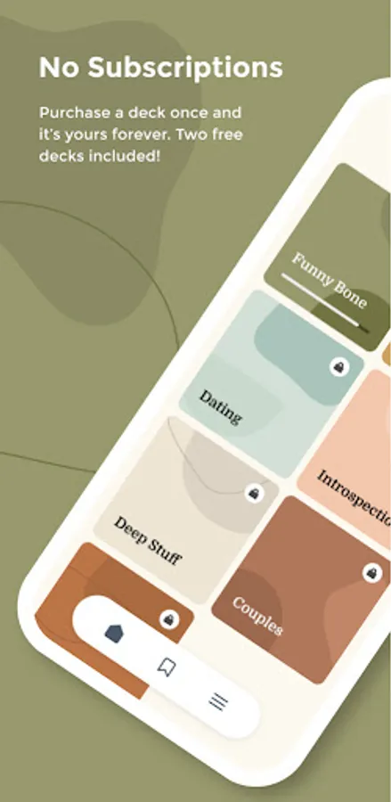 More and more unique decks will be added as Holsom grows. Each deck has a collection of prompts and two of our decks are available for free. No subscriptions here folks, each deck is $1.99 and you get to keep them forever.