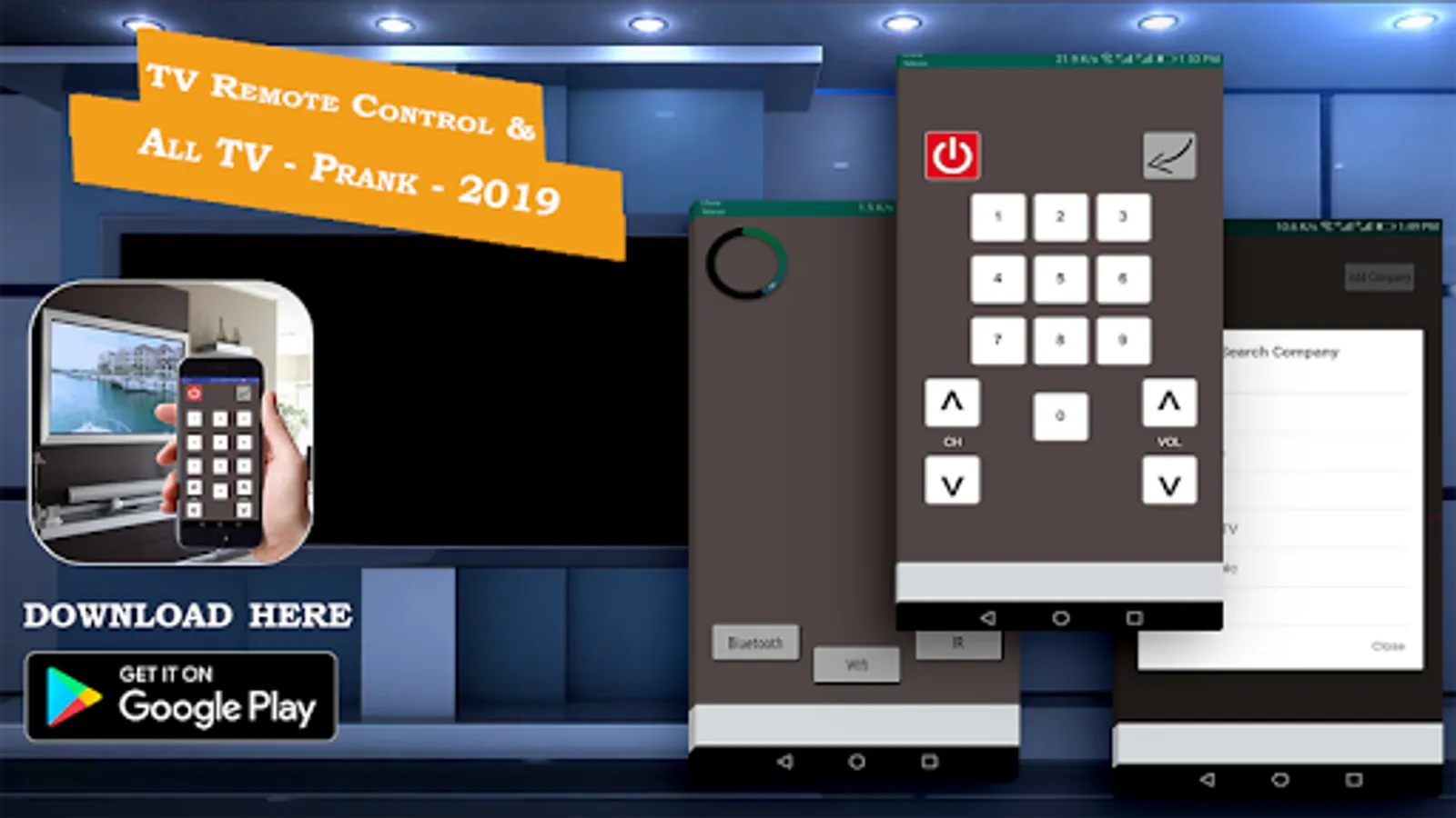 TV Remote Control & All TV - Prank - 2019 is compatible with more than 95 Tv Brand , it is an universal TV remote control and all in one remote app . Remote controll is the only remote TV and TV guide you need. Remote for all tv & tv remote control, Now you can control all your different devices with android tv remote controlar, So Very Easy to Use , Just put it on your mobile phone or tablet , choose your Tv Brands and find Something Good to Watch & never Miss Your Favorite Shows or sports game with tv remote prank .