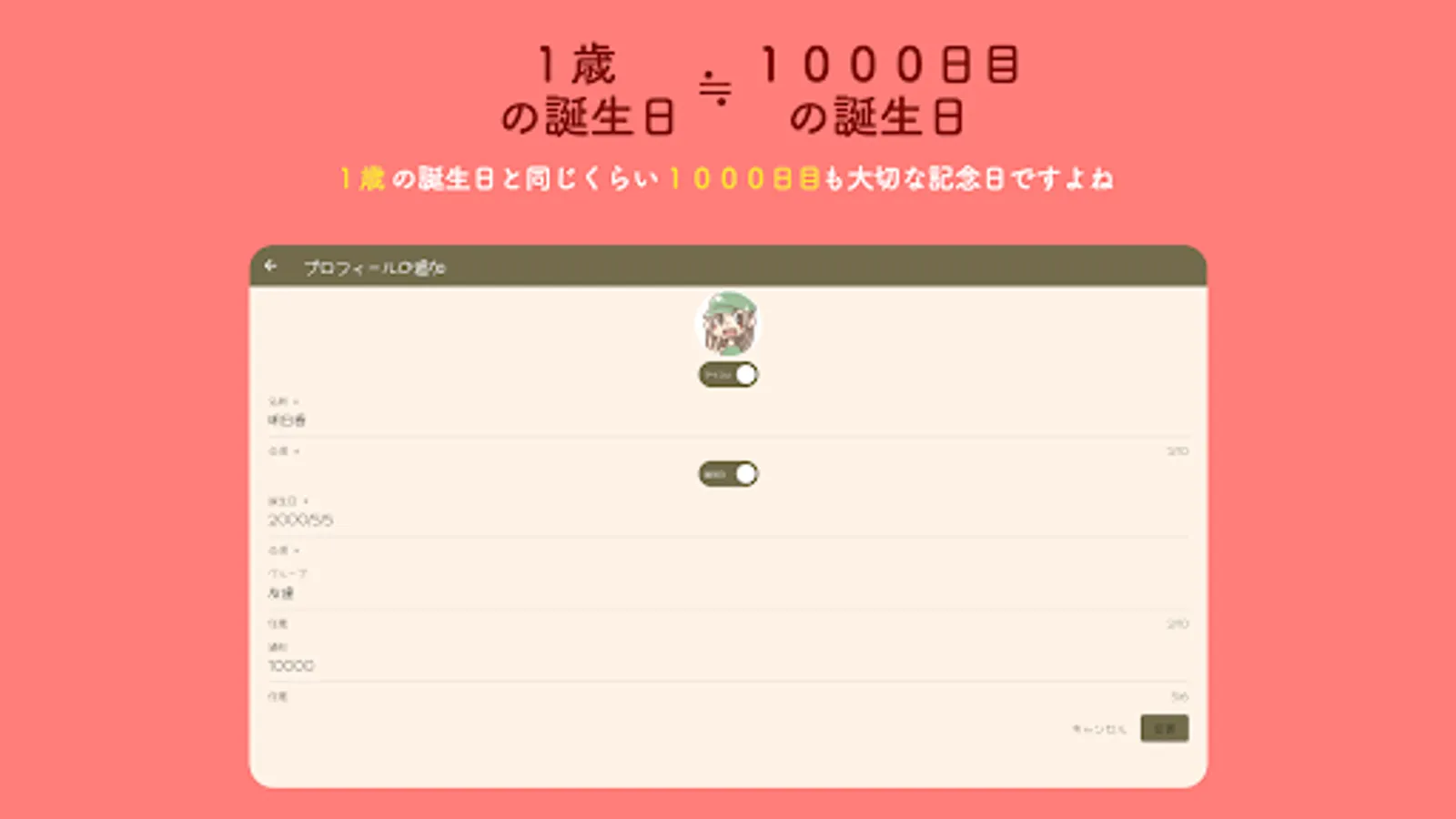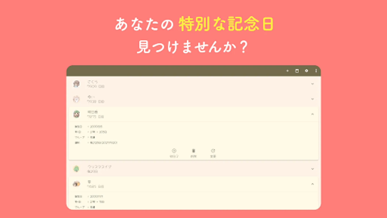 Not to mention "10th birthday" and "20th anniversary", "1000th day after meeting a loved one", "500th day after Oshi debuted", "300th day when pet XX came home" You can also find "eyes".