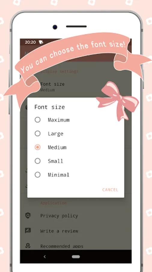 Tap the "Settings" icon on the upper right and select the size you want from "Text Size".