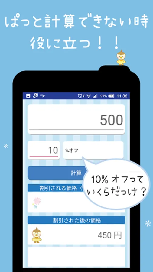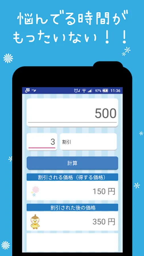 Just enter the price of the product and the discount rate (○ discount, ○% off) to get the discount price (the price you get)