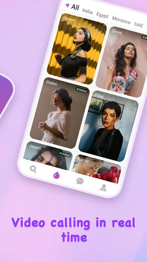 We focus on our user’s experience in the app and providing real time face to face video calling service for online users, you can call other side users in real time and will get their reply instantly.