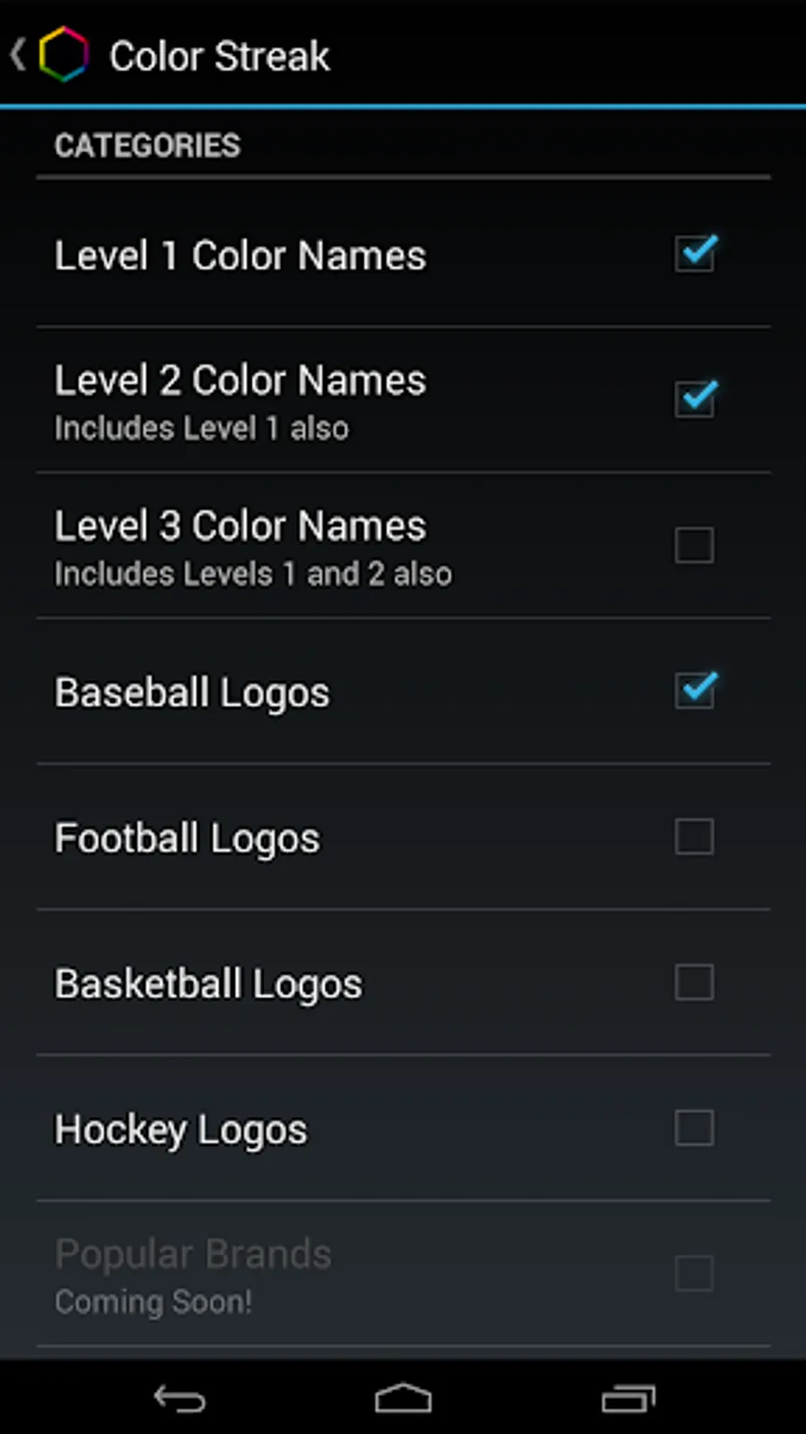 [-] Google Analytics : Tracking only the database load times (to get alerted if there is a device that takes too long and find ways to improve), right/wrong answers (see if there are certain color matchups that are too difficult and remove them). No private data is ever sent, however you may opt-out via Settings.