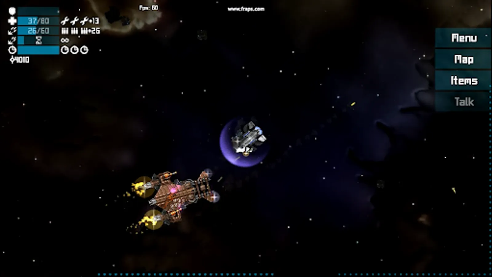- Randomly generated open world, consisting of 2 star systems, planets, asteroid belts and mazes.