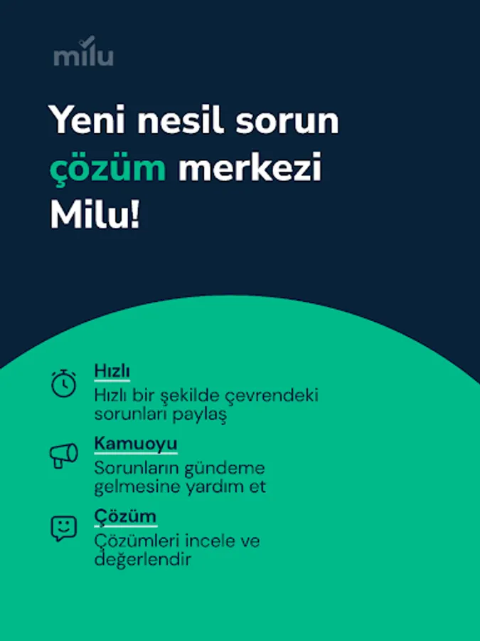 Sharing surrounding issues has never been easier with Milu! Share the problems around you with Milu, evaluate the problems, follow the solution processes and provide quick solutions to your problems!