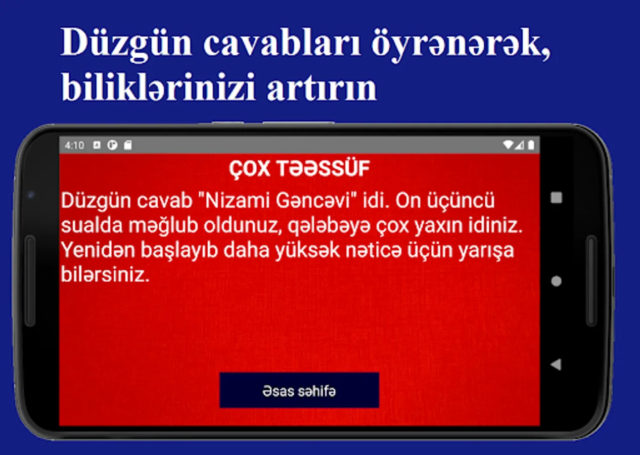 Azərbaycan və dünya haqqında minlərlə bir-birindən maraqlı sualları cavablandırmaqla dünyagörüşünüzü artırın.