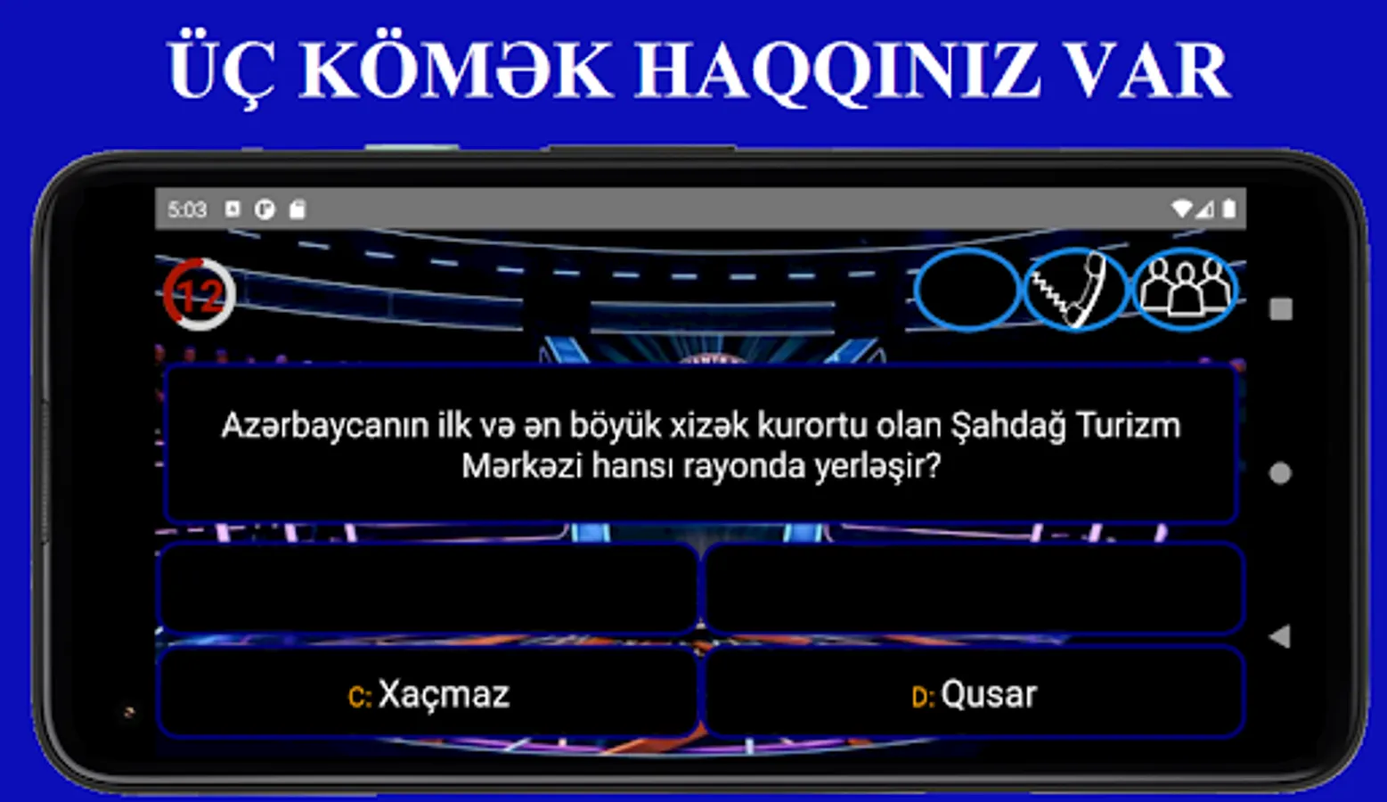Üç kömək haqqınız var, hər kömək haqqından yalnız bir dəfə istifadə etmək mümkündür.