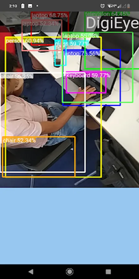 DigiEye is a blind assistant. It wants to help blind people in their daily life. Its aim is say whatever is around of the person. Also it can search for spesific objects and read texts.