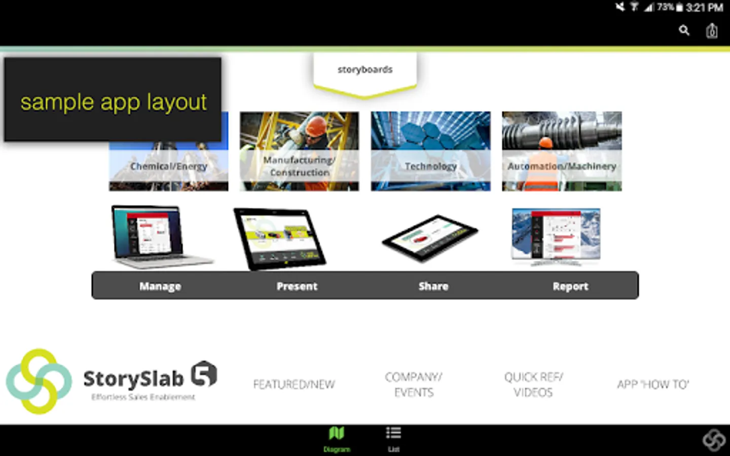 StorySlab is a B2B sales enablement platform and perhaps the most street-smart, easy-to-use sales tool that exists. Organize, carry, show, share, track, analyze, integrate. Surprisingly fast to deploy, each project is a configured app, web CMS and secure cloud storage for a unique user and prospect experience with both offline and web conferencing modes. Countless features make sales and marketing teams more efficient and effective, keep them on script an in process, and close business faster. Analytics-driven, modular and future-proof. Compatible with nearly all digital content formats.