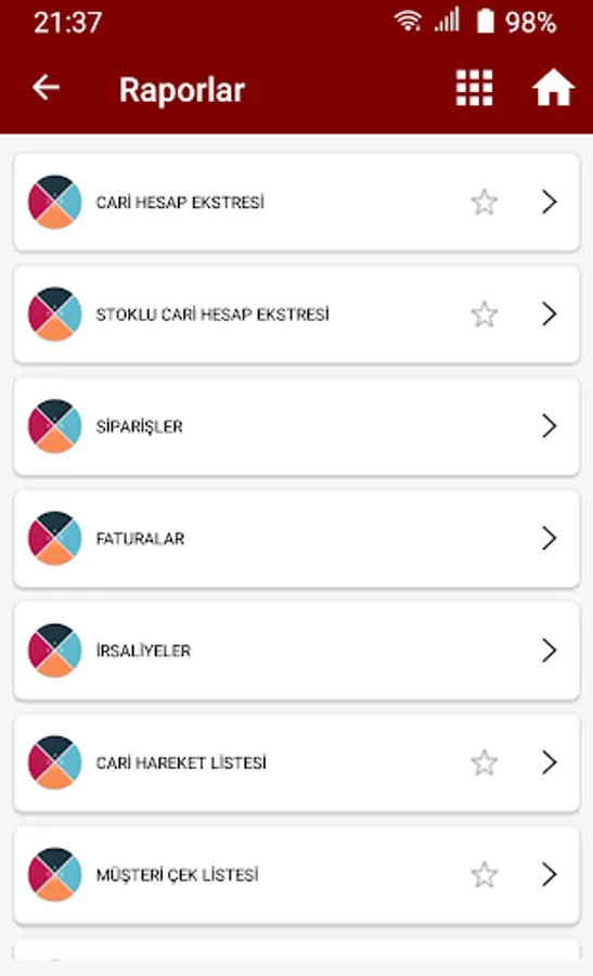 Invoice, order, safe, bank, check / promissory status reports can be accessed quickly on the special report screen of the manager.