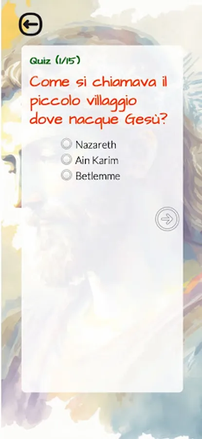 After reading the story of Jesus, I invite you to answer the quizzes we have prepared for you. You can choose between 15, 30 and 60 questions. At the end of each quiz you will be able to measure how much you know about the life of Jesus. To see the wrong answers at the end of the quiz, just go back to the various questions using the back arrow. Wrong answers will be indicated by the color red. Good fun!