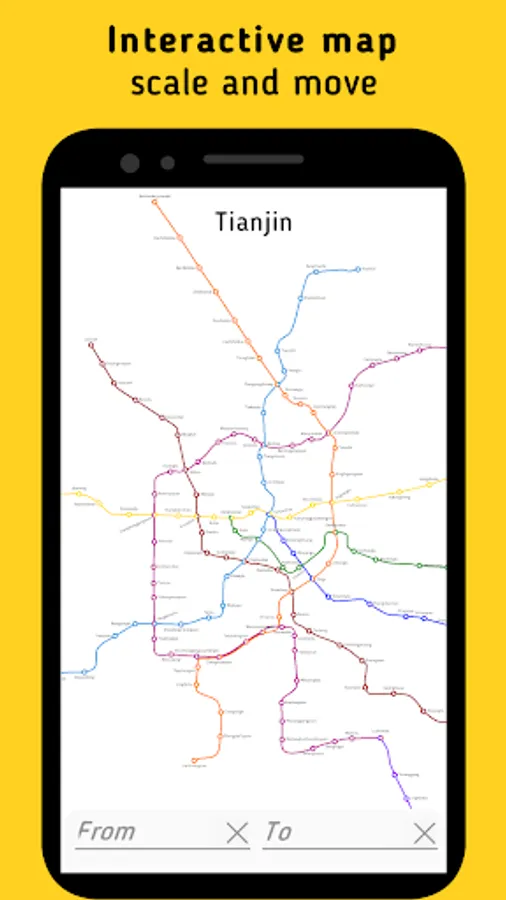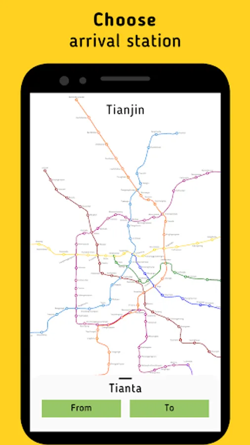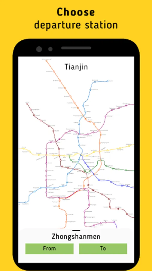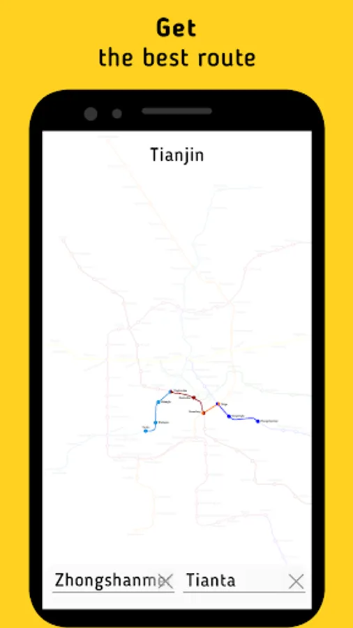 The application allows you to choose the best route in the subway city of Tianjin.